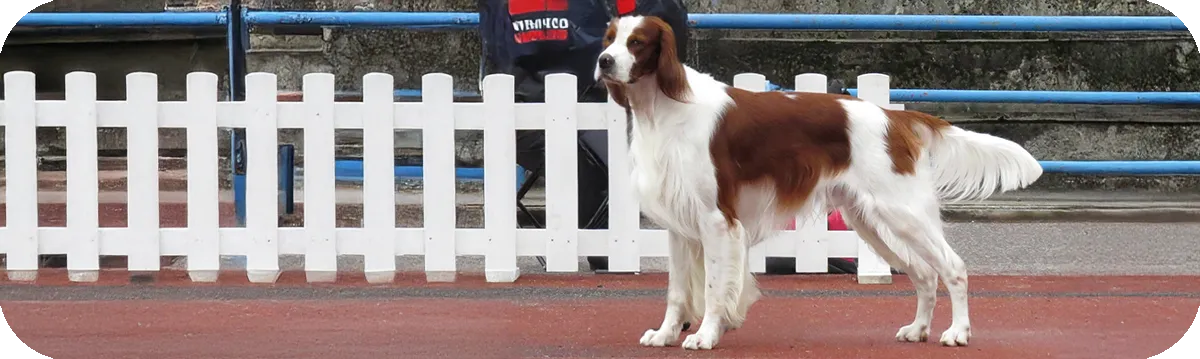 Variedades de la raza: El Setter irlandés rojo y blanco es una raza única, no se reconocen oficialmente diferentes variedades dentro de ella.