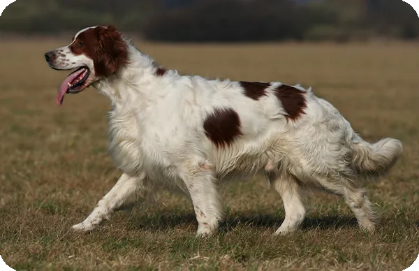 Tamaño: El Setter Irlandés Rojo y Blanco es un perro de tamaño mediano a grande, con una estructura fuerte y atlética.
