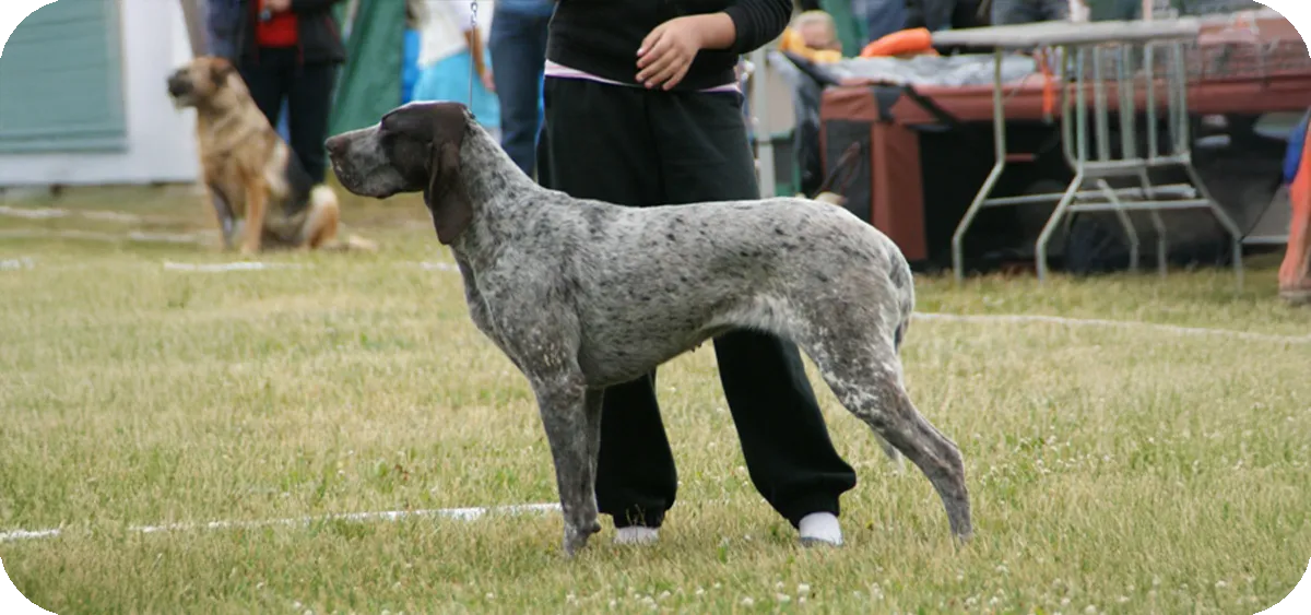 Colores de pelaje: Sus colores combinan blanco e hígado en patrones jaspeados únicos. Una mancha blanca en la frente es muy común, y las orejas suelen ser de color hígado uniforme. El negro y los tonos "fuego" no están permitidos.